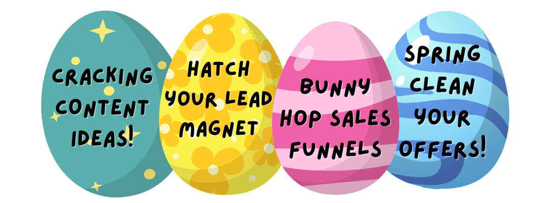This Easter, you’re invited to crack open a bundle of goodness designed to grow your business without the overwhelm. Whether you need fresh content ideas, a lead magnet that actually works, or a spring-clean of your offers, there’s an egg for you!